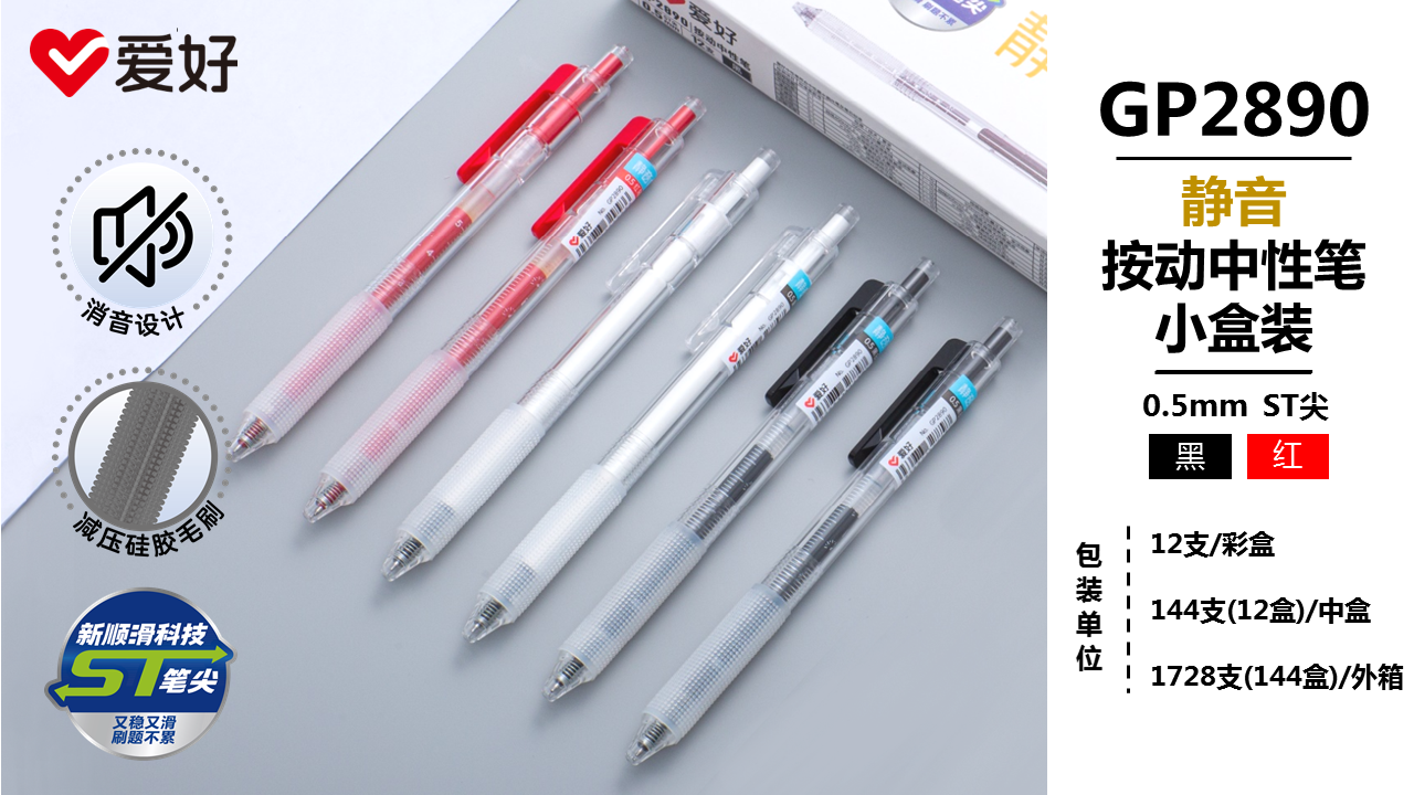 GP2890盒装  静音按动中性笔小盒装